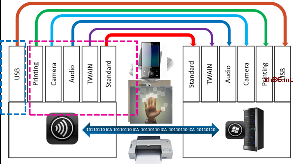 Citrix使用具有单独逻辑通道的ICA协议进行连接。因此除了直接把通用USB通道进行映射之外,还提供更加具有针对性优化的不同映射逻辑通道。这些通道能够通过策略进行开关和QoS控制。