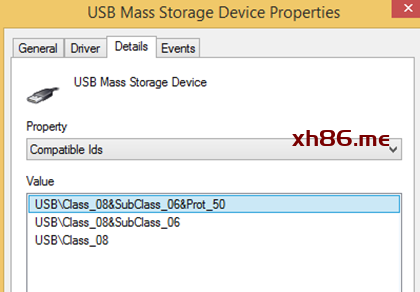 这些属性在进行通用USB设备重定向时需要使用,可以通过设备管理器中,右键设备查看属性的详细页面进行查看。