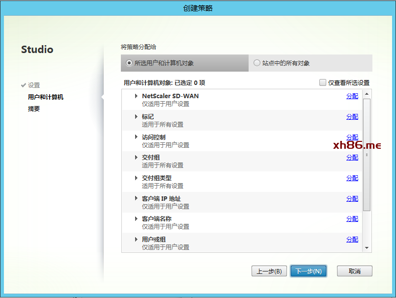 除了类似AD活动目录组策略,Citrix的策略在支持组织单元(OU)为应用对象之外,还支持很多其他类型的用户和计算机对象区分。 ![]() |