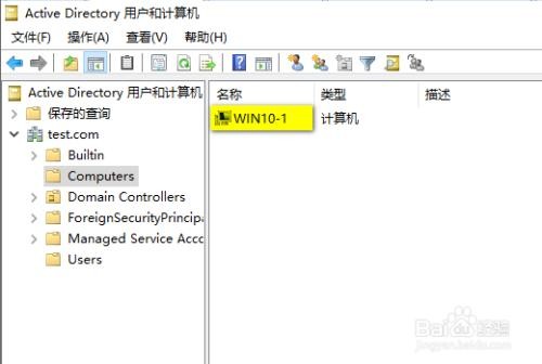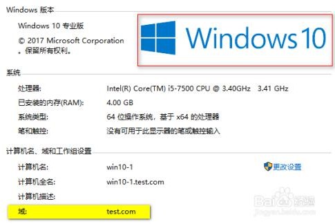 windows 10 已经加入域 test.com