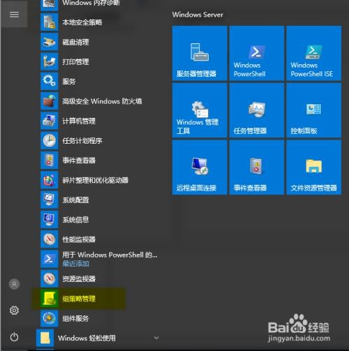 打开“开始菜单”,然后在“windows 管理工具”中找到“组策略管理”工具,并打开“组策略管理”