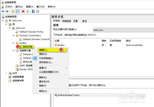 鼠标右击刚创建的 GPO“软件分发”,单击“编辑”