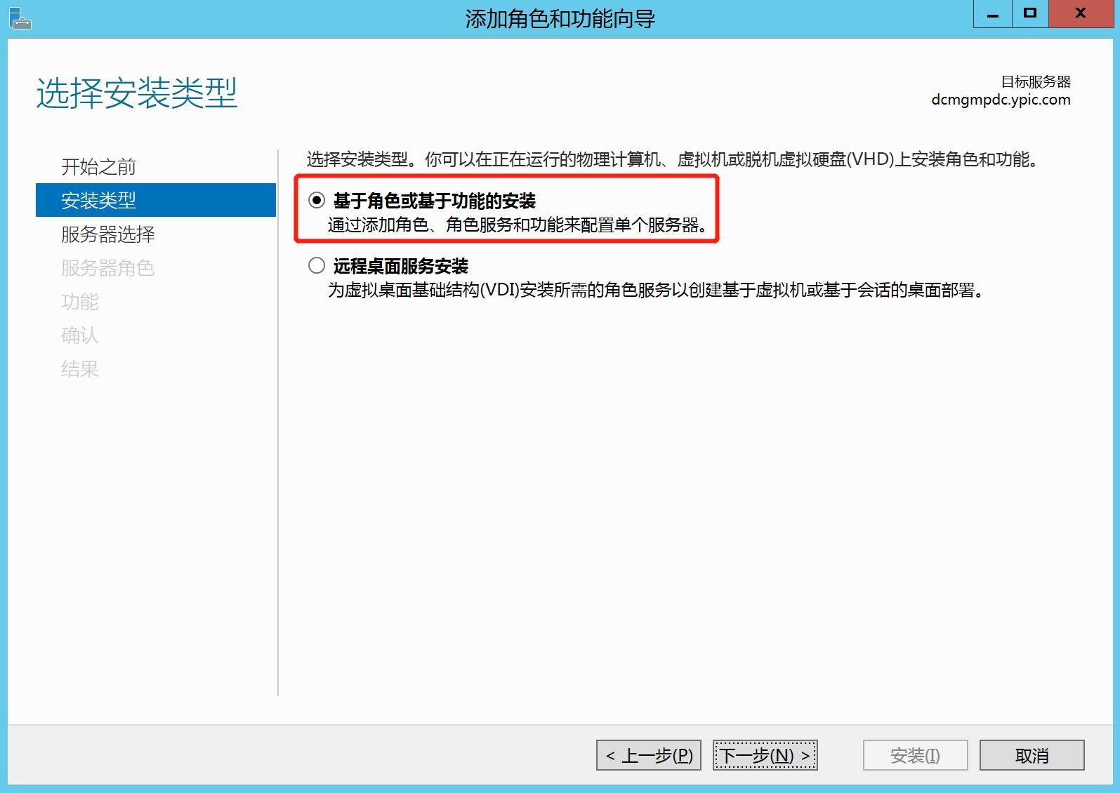 3、选择”基于角色或基于功能的安装”,如下图所示: