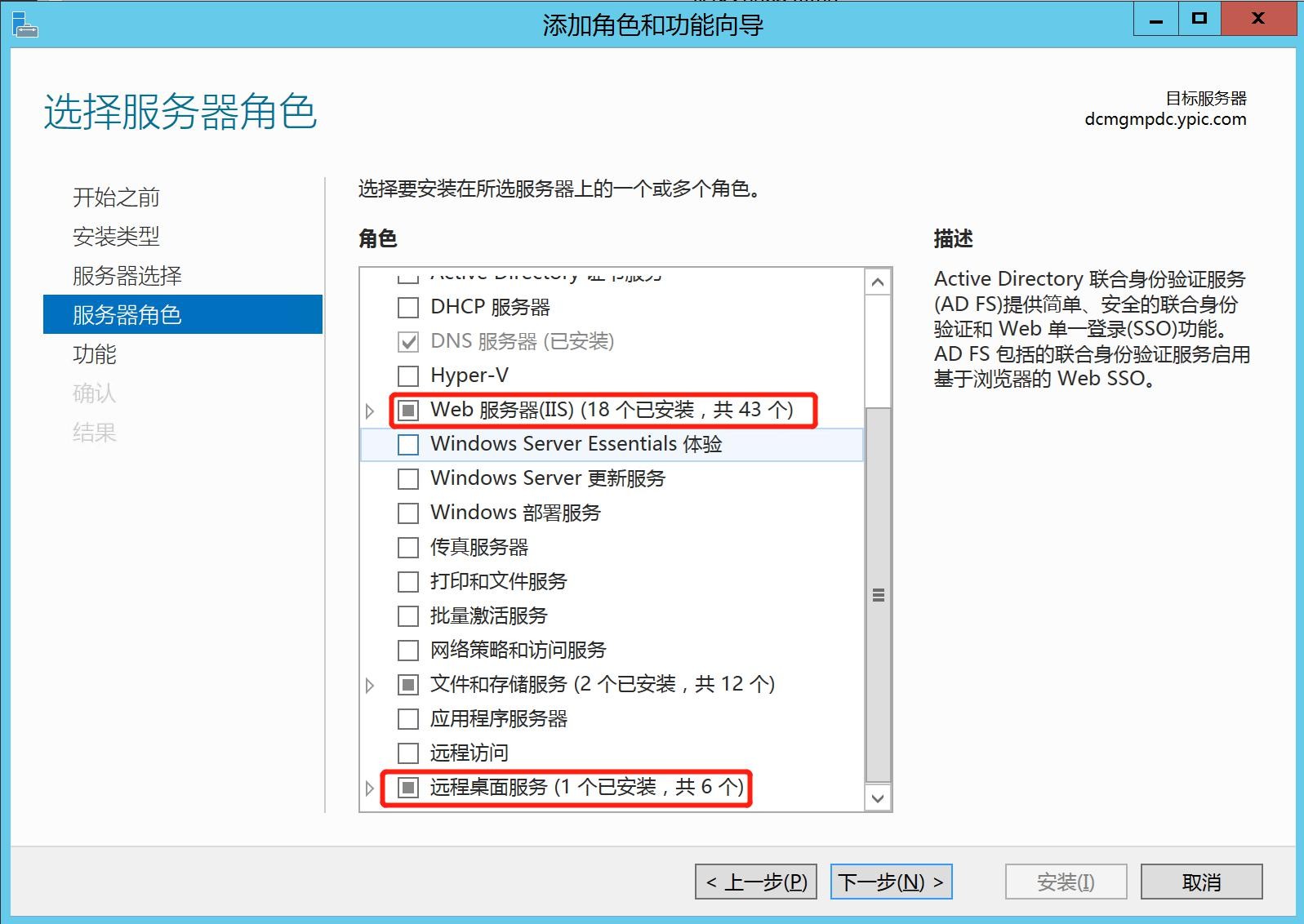 4、选择Web 服务和远程桌面服务,如下图所示:
