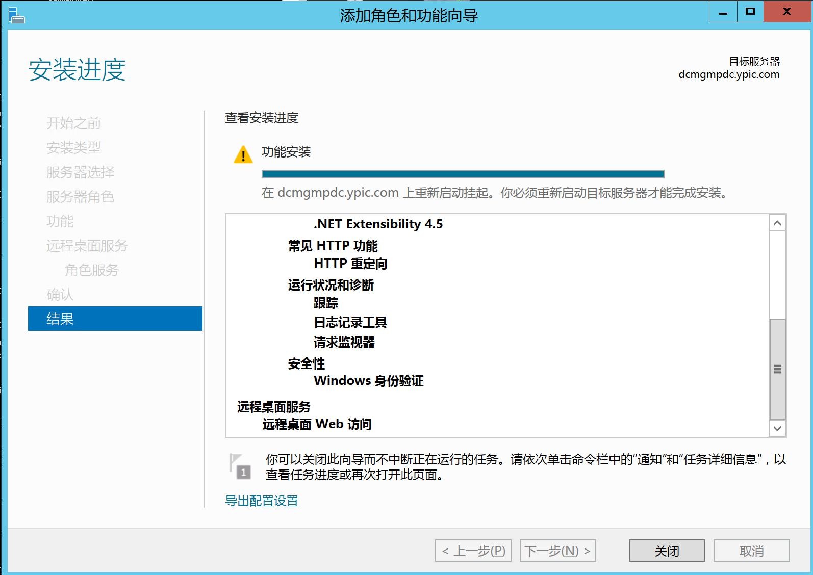 9、等待片刻,安装滚动条完成后,重启服务器来完成配置。