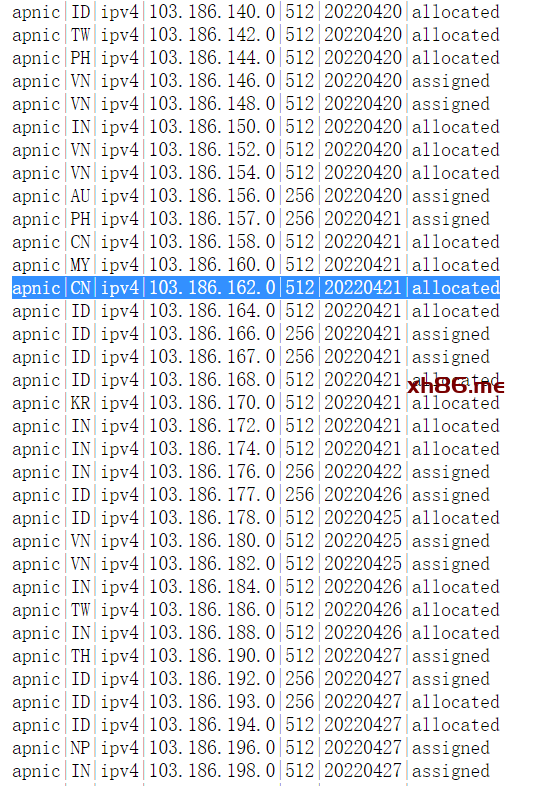 http://ftp.apnic.net/apnic/stats/apnic/delegated-apnic-latest