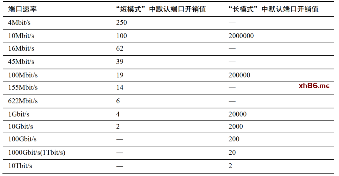 默认下, PVST+的交换机使用 short 模式(16 比特)端口开销值。如果有10Gbit/s或以上的端口,应在网络中的所有交换机上将端口开销取值范围设定为 long 模式(32 比特)。MISTP、 MISTP-PVST+及 MST 默认使用“长模式”的端口开销。