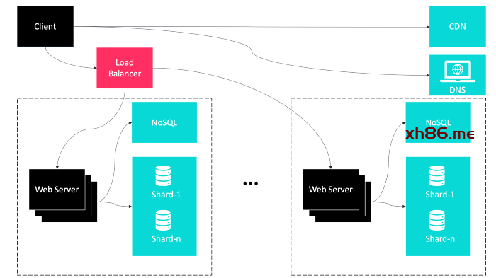 当流量快速增长时,只需要向 Web 服务器池中添加更多的服务器,负载均衡器就会自动路由流量。