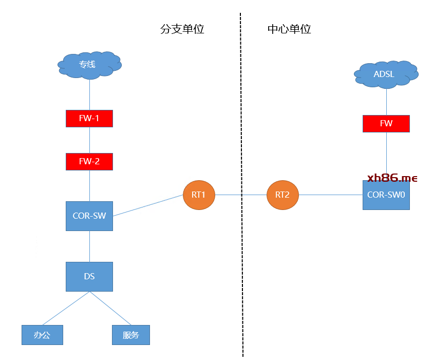 当然了哈,你可以自己去想一下,能不能把分支单位办公流量用策略路由重定向到RT1,然后把分支单位服务流量当成一般流量,用默认路由走FW-2呢?