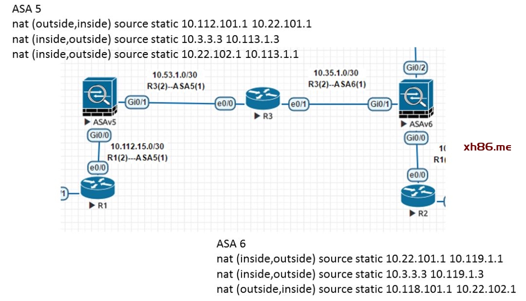 R2的Loopback 0地址,经过ASA6以后,被转换为10.22.102.1,再经过ASA5被转换为10.113.1.1
