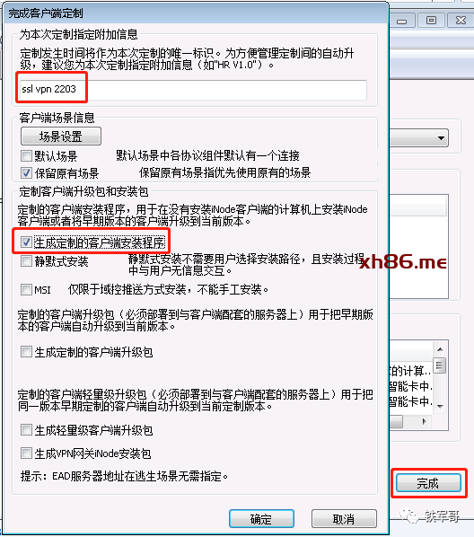 指定一个附加信息,勾选“生成定制的客户端安装程序”就OK了。然后就可以在以下目录中找到生成的安装包。