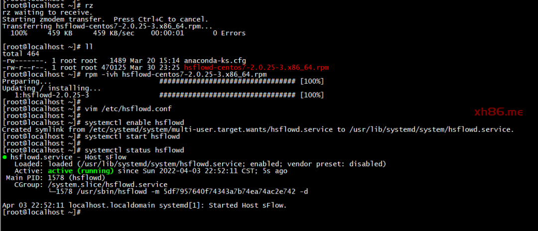 rpm -ivh hsflowd-centos7-2.0.25-3.x86_64.rpm
