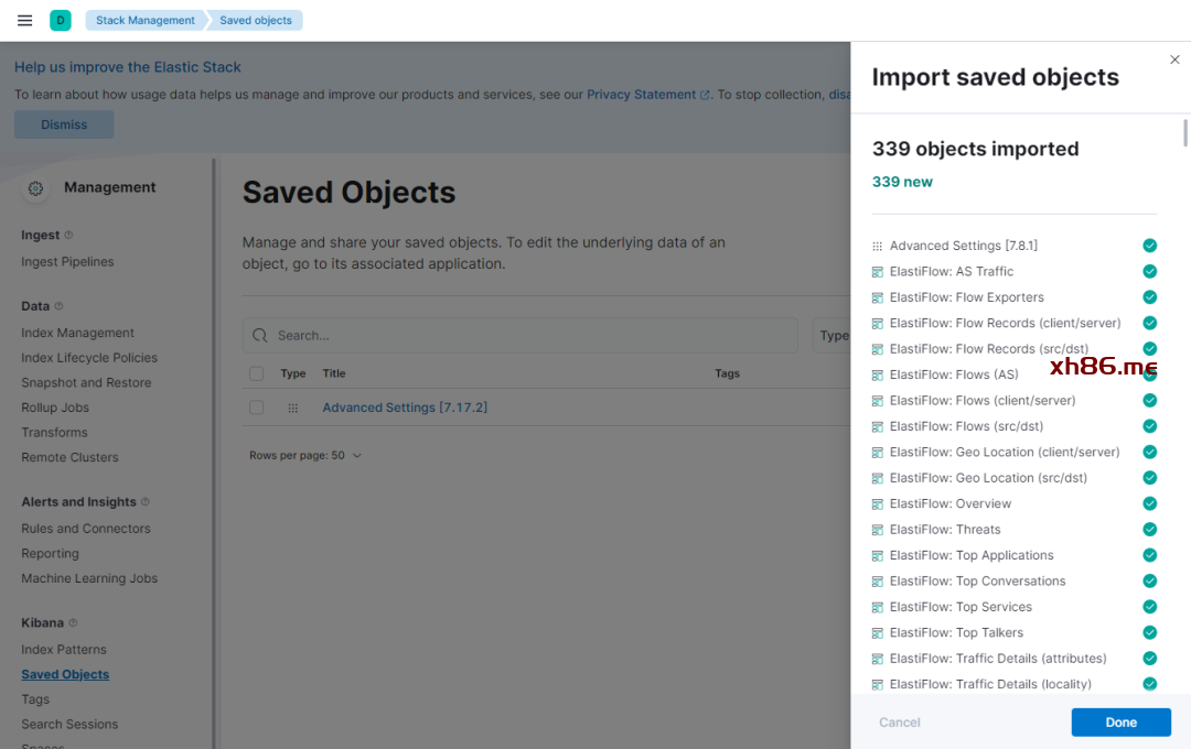 导入elastiflow.kibana.7.8.x.ndjson到kibana
