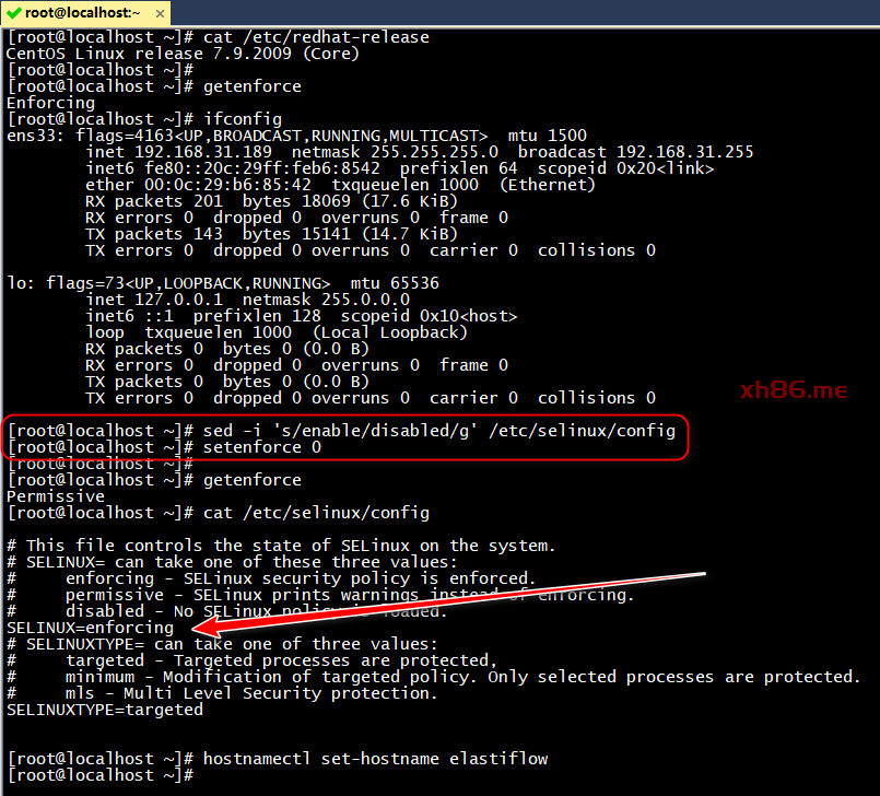 sed -i 's/enable/disabled/g' /etc/selinux/config