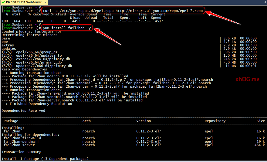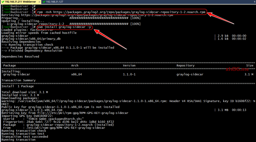 1、CentOS7 webserver 192.168.31.211作为日志源,安装fail2ban+graylog-sidecar+filebeat