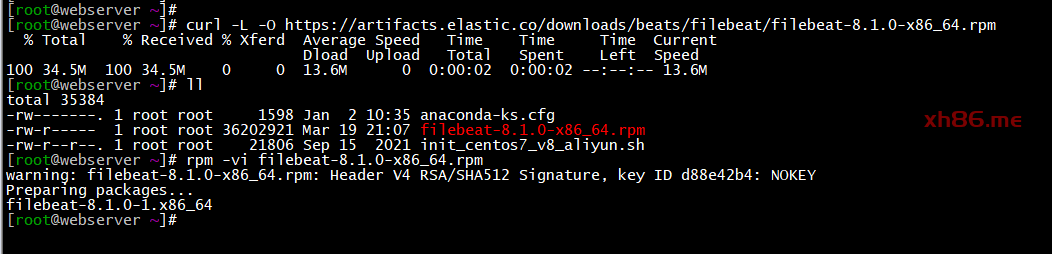 rpm -vi filebeat-8.1.0-x86_64.rpm
