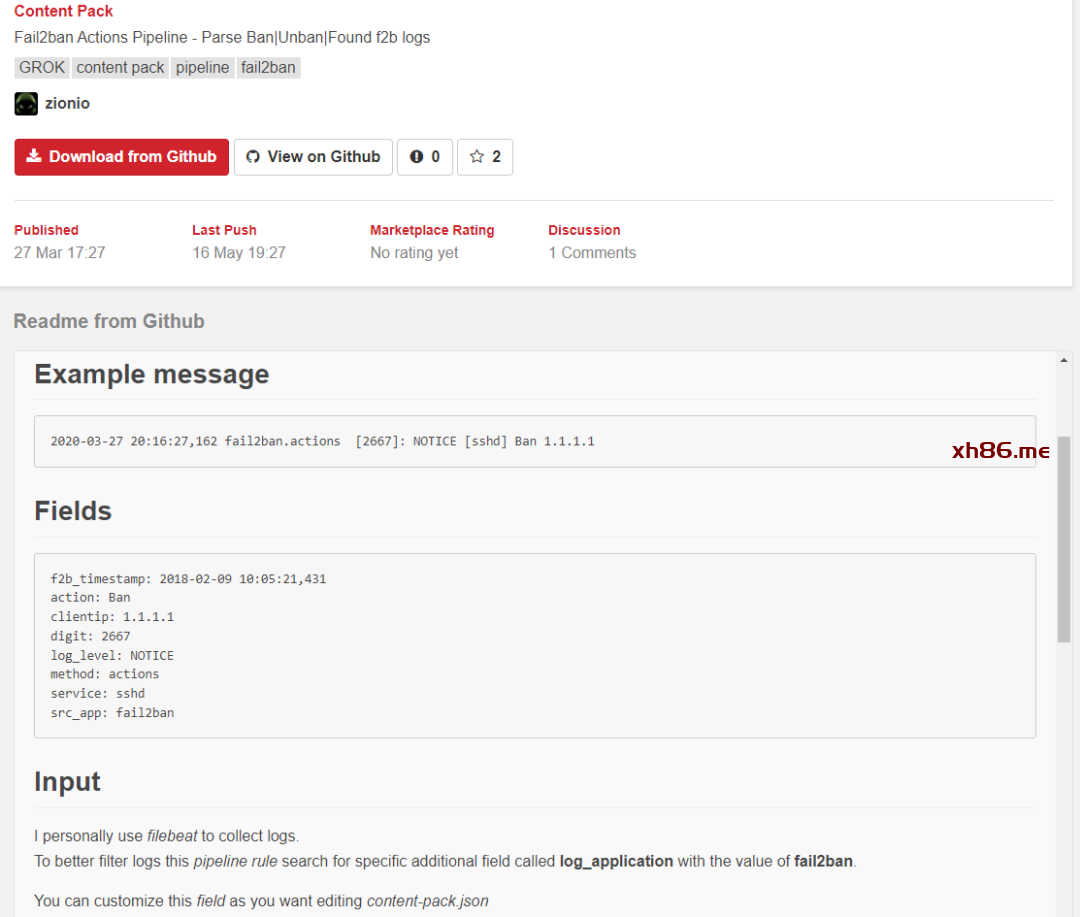 在GrayLog的marketplace上有搜到关于Fail2ban日志Grok以及Pipeline的套件包